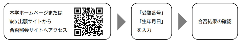 合格発表は、発表日時にあわせて合格発表システムより各自で自身の合否が確認できるようになります。