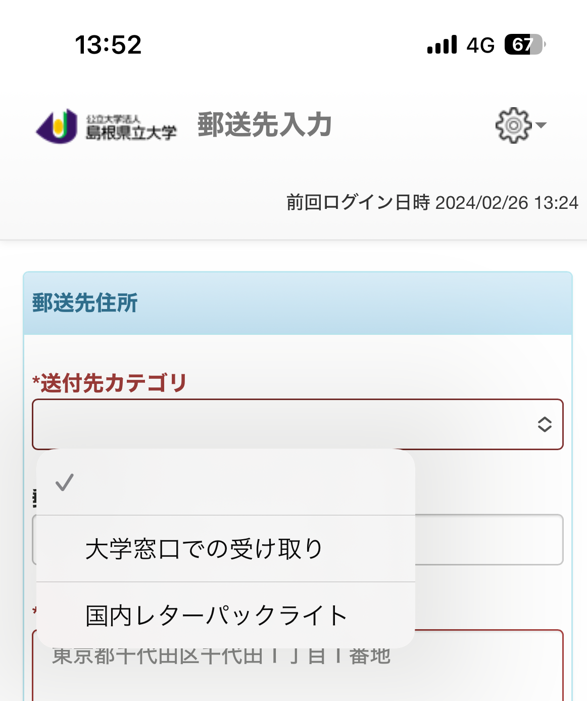 オンラインサービスにて「郵送」を選択し、必要な証明書の発行を申請した後に郵送カテゴリーのプルダウンメニューで「大学窓口での受け取り」を選択して学務課窓口で受け取るものです。窓口発行は通常5営業日程度かかります。準備ができ次第学内メールにて通知します。