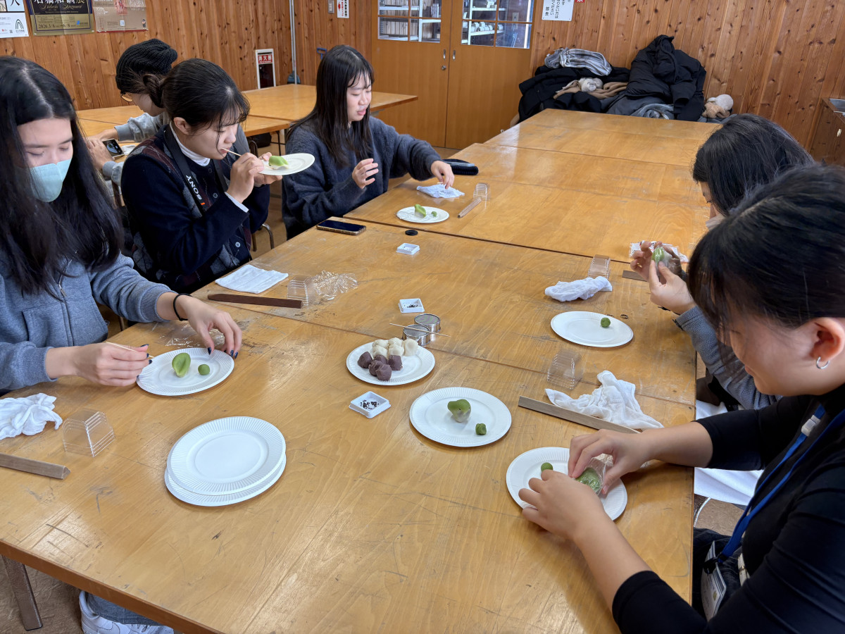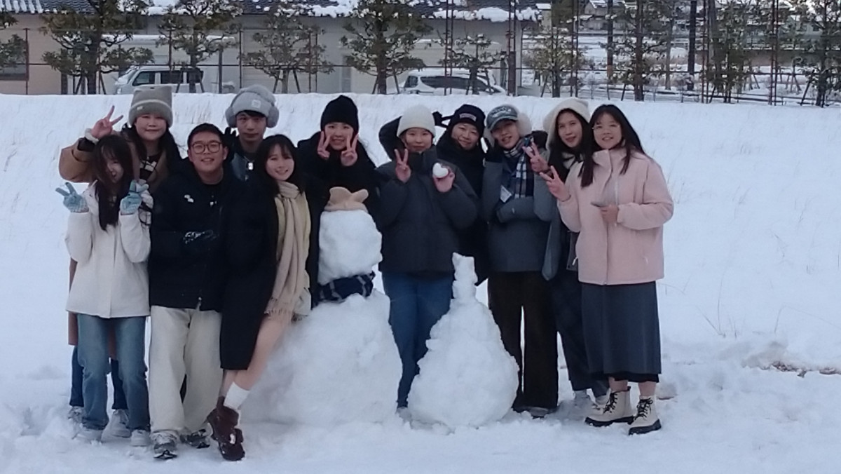 期間中、島根県内は大雪に見舞われましたが、台湾では雪がほとんど降らないため、初めて雪を見る学生も多く、雪に触れて楽しむ姿がとても印象的でした。また、和菓子作り体験や出雲大社の参拝など、地域文化に触れる活動も実施し、学生たちは日本の伝統文化への理解を深めていました。