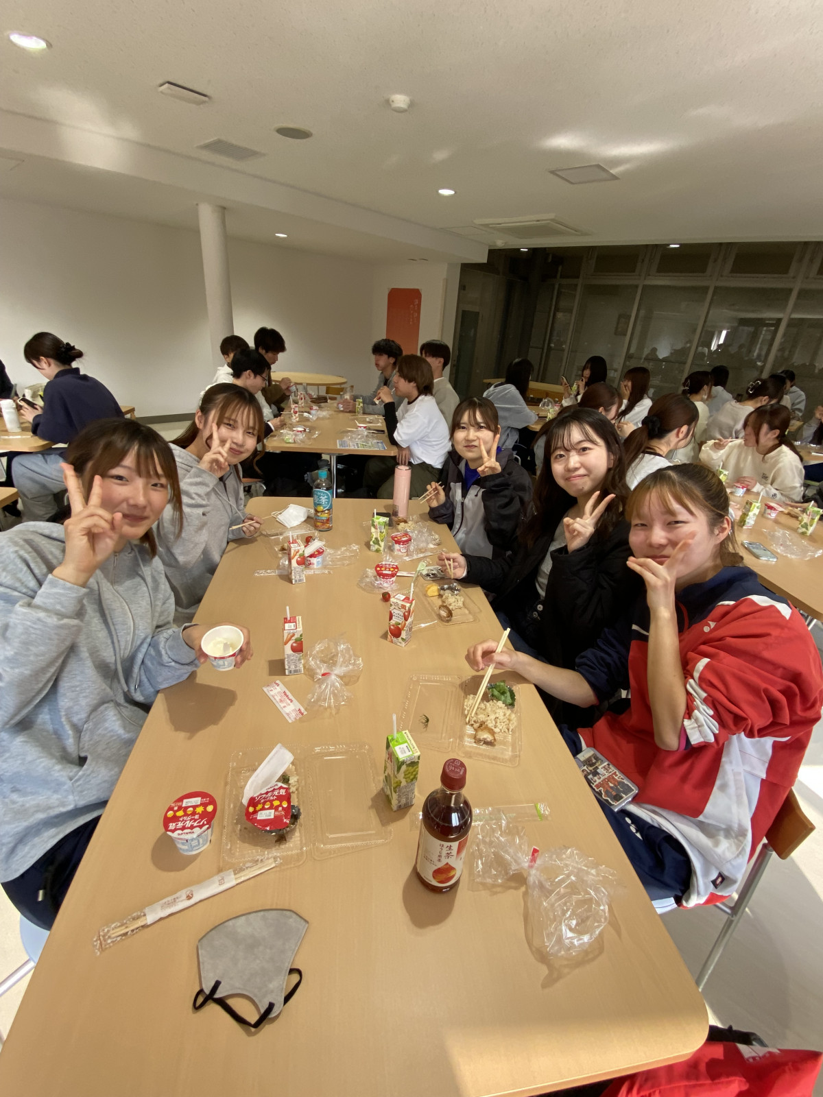 11月17日(月)、秋晴れの空の下、出雲キャンパスで学生応援企画第2弾「食欲の秋到来????美味しい島根米で旬を味わおう!」を開催しました。 本イベントは、学生の「食と健康」を応援し、島根米のおいしさを知ってもらうことを目的に実施しています。 第2弾となる今回は、炊き込みご飯とおかずのセットに加え、後援会からジュースとヨーグルトの無料配布も行われ、食堂に集まった大勢の学生がおいしく楽しいひと時を過ごしました。
