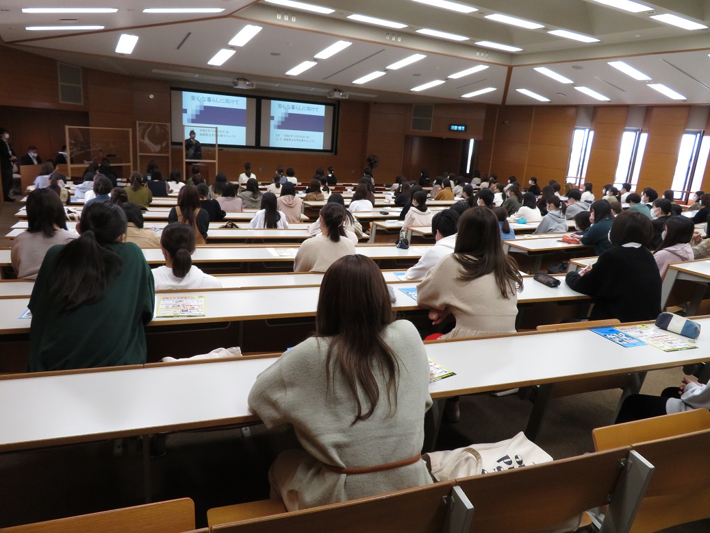 今年度入学した1年生や編入生を対象に、学生生活支援講演を開催しました。例年は入学したての4月に講演を、10月に護身術教室を開催しているところですが、今年は新型コロナウイルス感染症の影響により開催を延期しており、本日ようやく実施することができました。