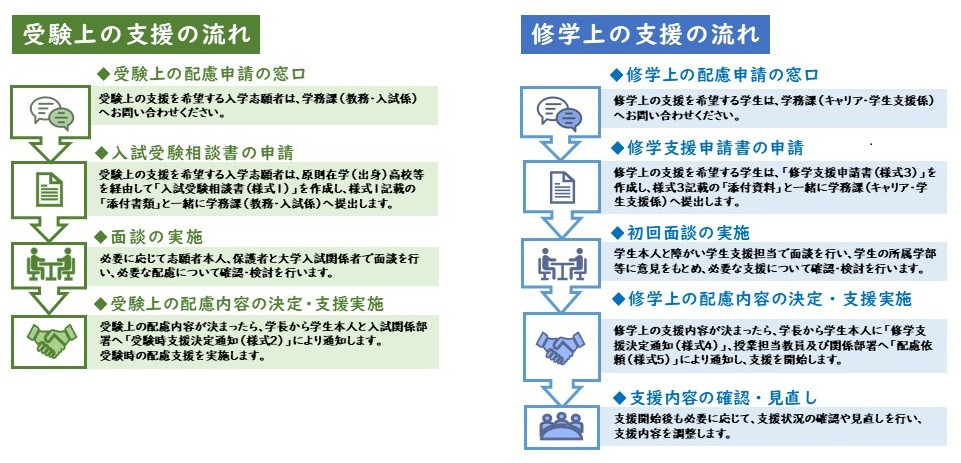 詳細は「入学手続き」に同封いたします「入学後の障がい学生の修学支援について」をご確認ください。