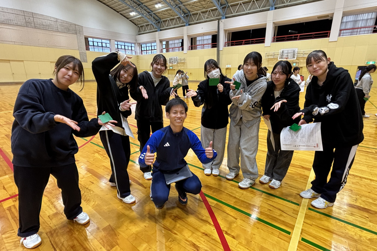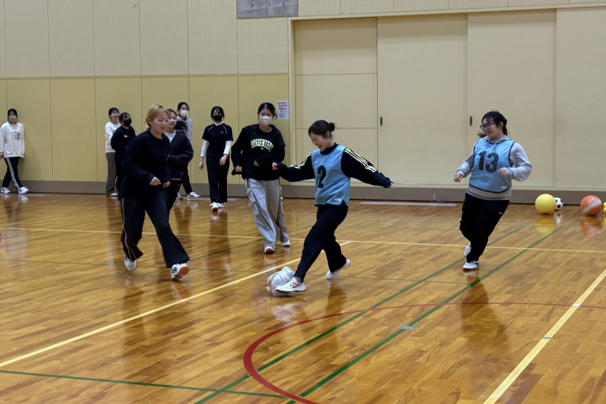 キッズリーダー講習会に参加して、子どもが運動を「楽しい」「やりたい」と感じられるようにするためには、保育者の関わりがとても重要だと学びました。実際に自分たちも運動遊びを体験したことで、子どもがどんな気持ちで取り組んでいるのか、またどのような関わりがあればやる気が高まるのかをより理解できたように思います。今後、実習や"なでしこひろば"などのボランティア活動でも、今回学んだ言葉かけを意識しながら、子どもが前向きに取り組めるような関わりをしていきたいです。