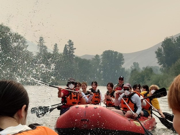 2人あるいは3人グループになり、それぞれがホストファミリーとの交流を楽しみました。訪問する前は、ほとんどの学生たちは自分達の英語をきちんと伝えることができるのか、会話を続けることはできるのかといった不安を抱いていました。しかし、皆口を揃えて、「楽しかった」と笑顔で帰宅してきました。クッキングや買い物やドライブなどを通じて、それぞれグループで、ホストファミリーとの楽しい時間を過ごしました。August 20th Rafting