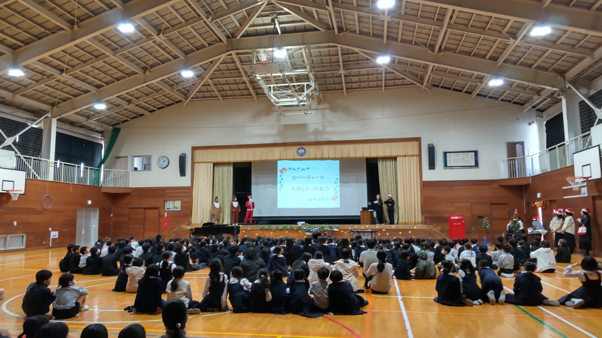12月6日(水)、島根大学附属義務教育学校前期課程のクリスマス会に学生5名が参加し、小学1年生~6年生を対象に、劇や絵本の読み聞かせ、楽器の演奏を行いました。