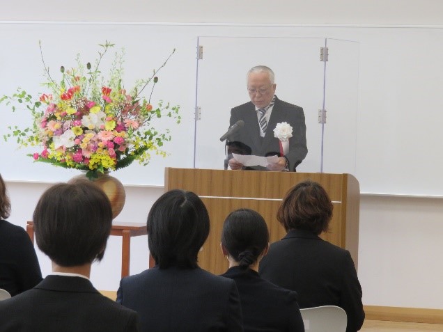 また、山下学長から「人類の歴史は感染症との戦いと言っても過言ではなく、コロナ感染症も4年目に入り未だ完全に収束したとは言えない。本学が感染管理認定看護師教育課程を開設することは、新しい感染症対策の一つになると考えている。現在、島根県内における感染管理認定看護師B課程の登録者数は0名であり、履修生の皆さんが、感染管理B課程の第1号として大きな役割を果たされることを期待する。」と式辞がありました。