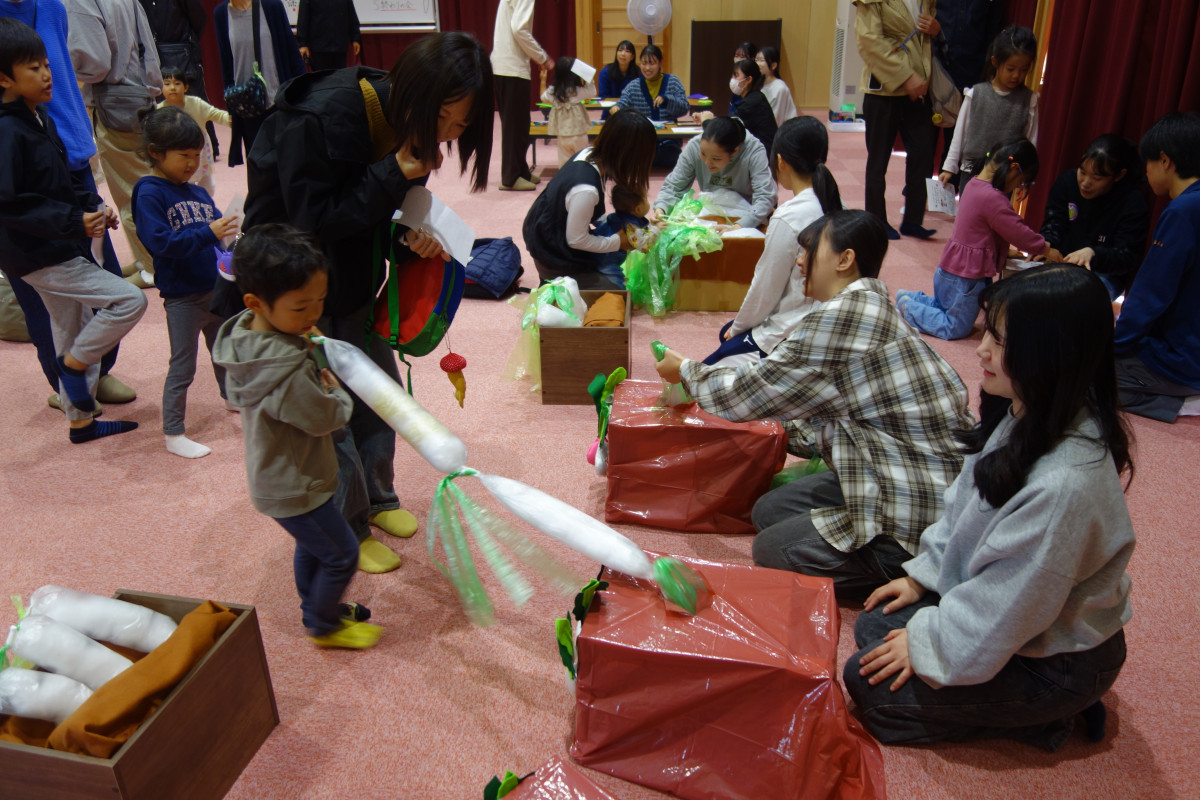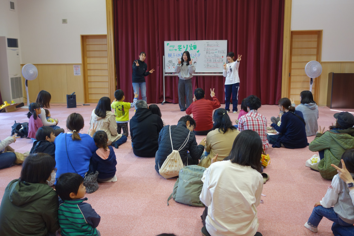 とても貴重な体験をさせていただき、ありがとうございました。初めて参加しましたが、子どもたちも親もとても楽しく活動できました。お土産もたくさんいただきありがとうございました。帰宅後も、いちごの苗に水やりをしたり、野菜に興味をもったりしていました。「大根の葉っぱって食べられるんだ!」と、収穫したばかりの大根を眺めていた様子もありました。 学生さんたちとの触れ合いもとても楽しかったようで、人見知りの我が子が一緒に活動する姿もあり驚きました。 本当にありがとうございました。