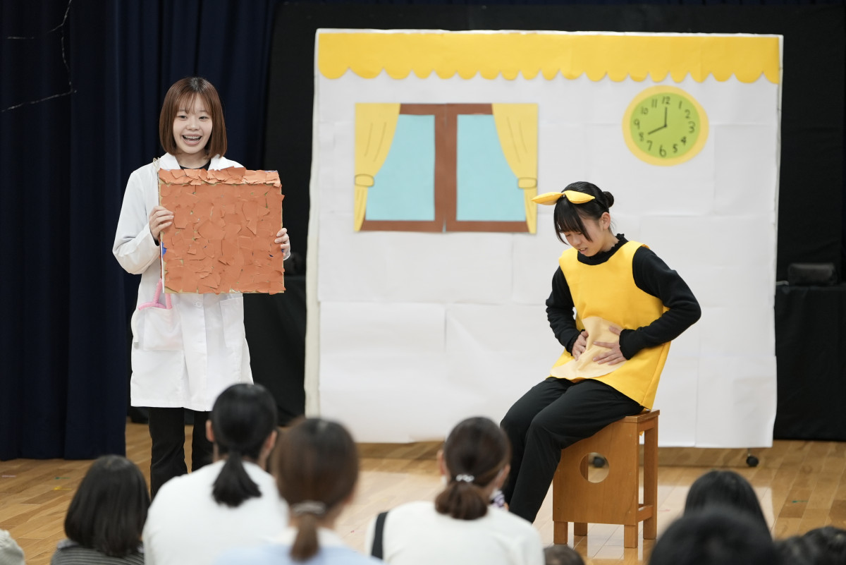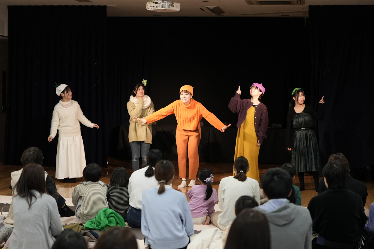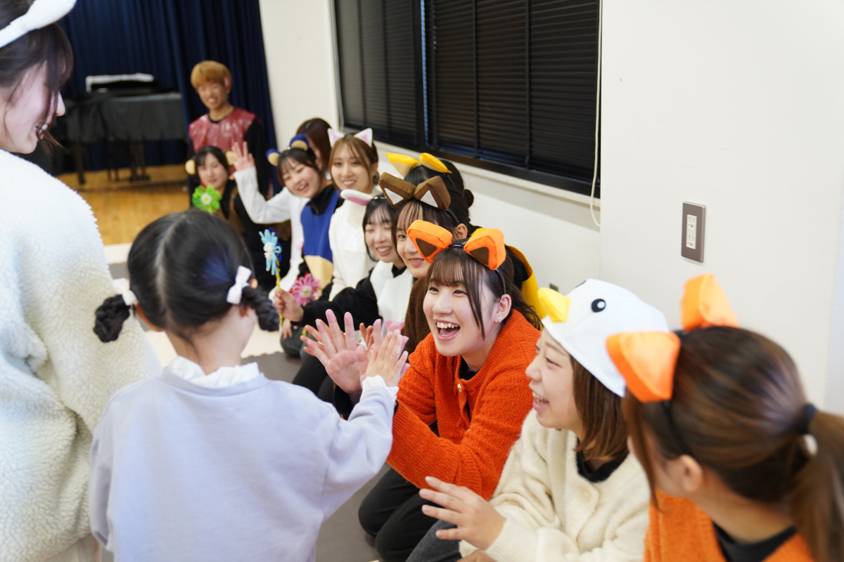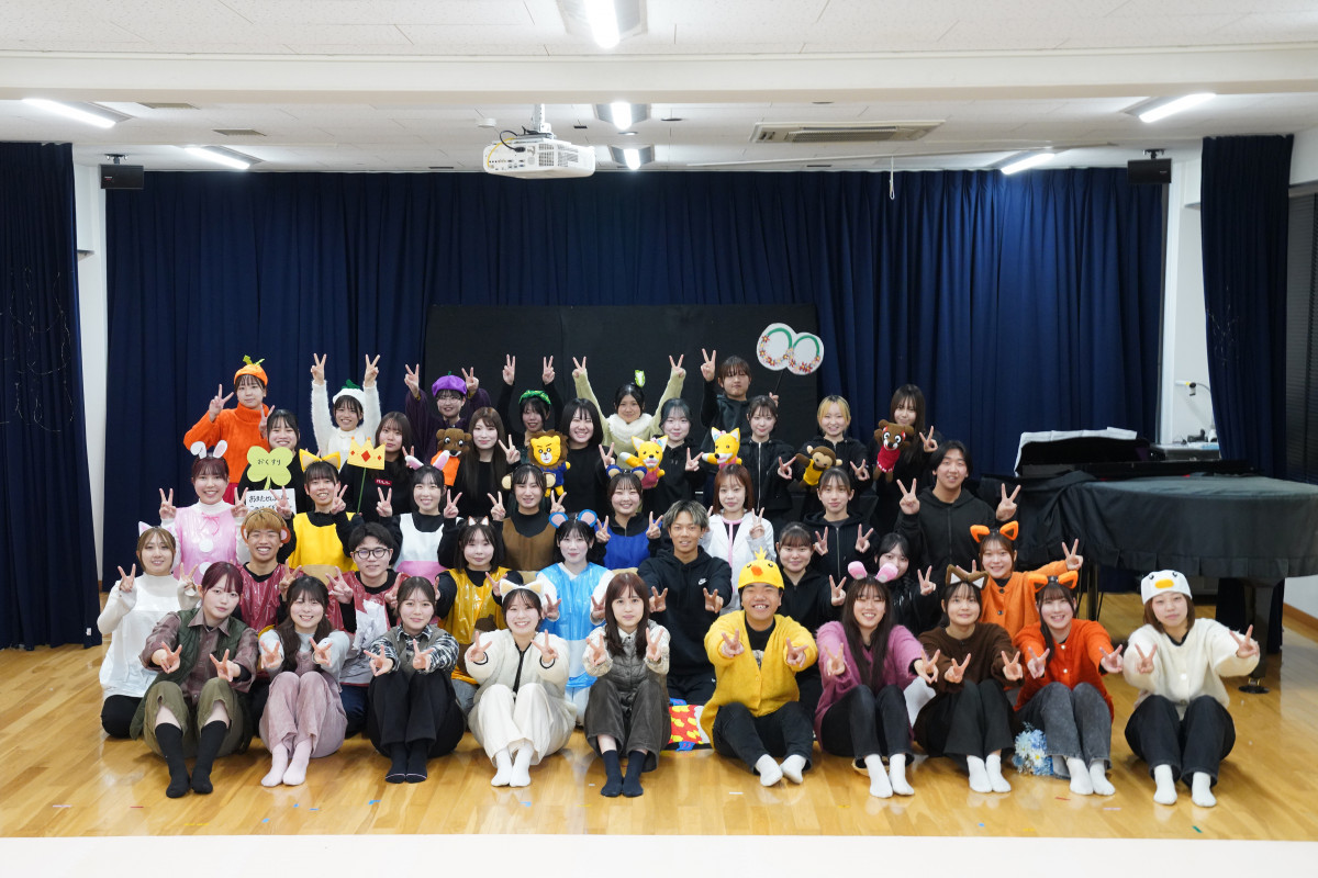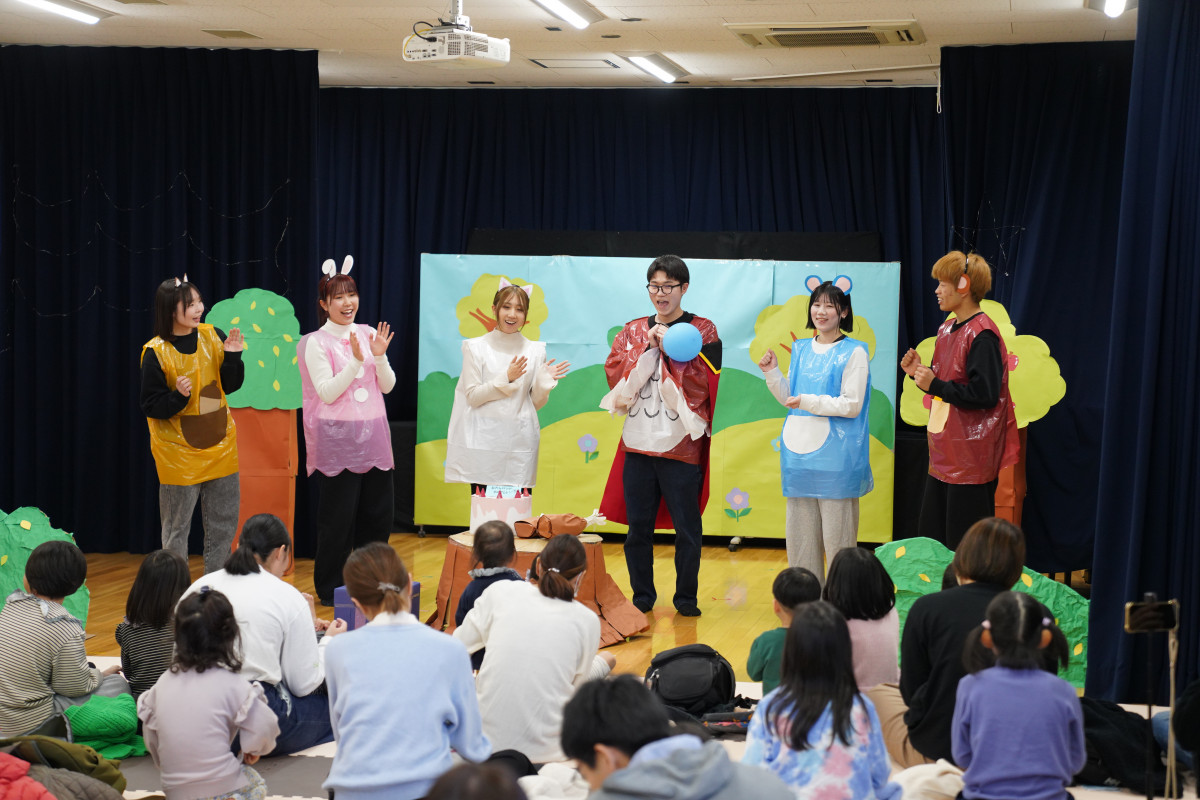 昨年12月13日(土)に、保育学科学生による「第8回キッズシアター」が開催されました。当日は、多くの子どもたちや保護者の皆さま、ならびに関係者の方々およそ90人の方々にご来場いただきました。学生たちは、子どもたちの姿を思い浮かべながら何度も話し合いを重ね、それぞれの役割やパートの特性を生かした演目を創り上げました。当日は、その成果が存分に発揮され、心のこもった素晴らしい発表会となりました。ご来場いただいたすべての皆さまに、心より感謝申し上げます。