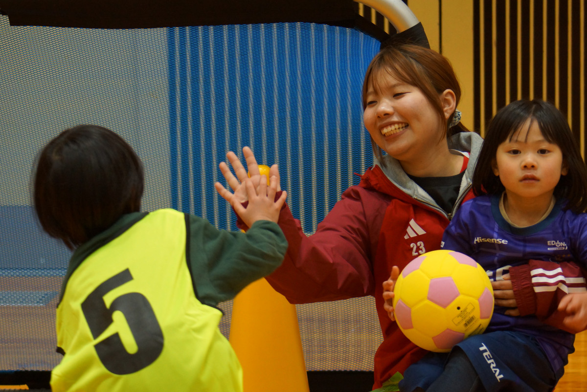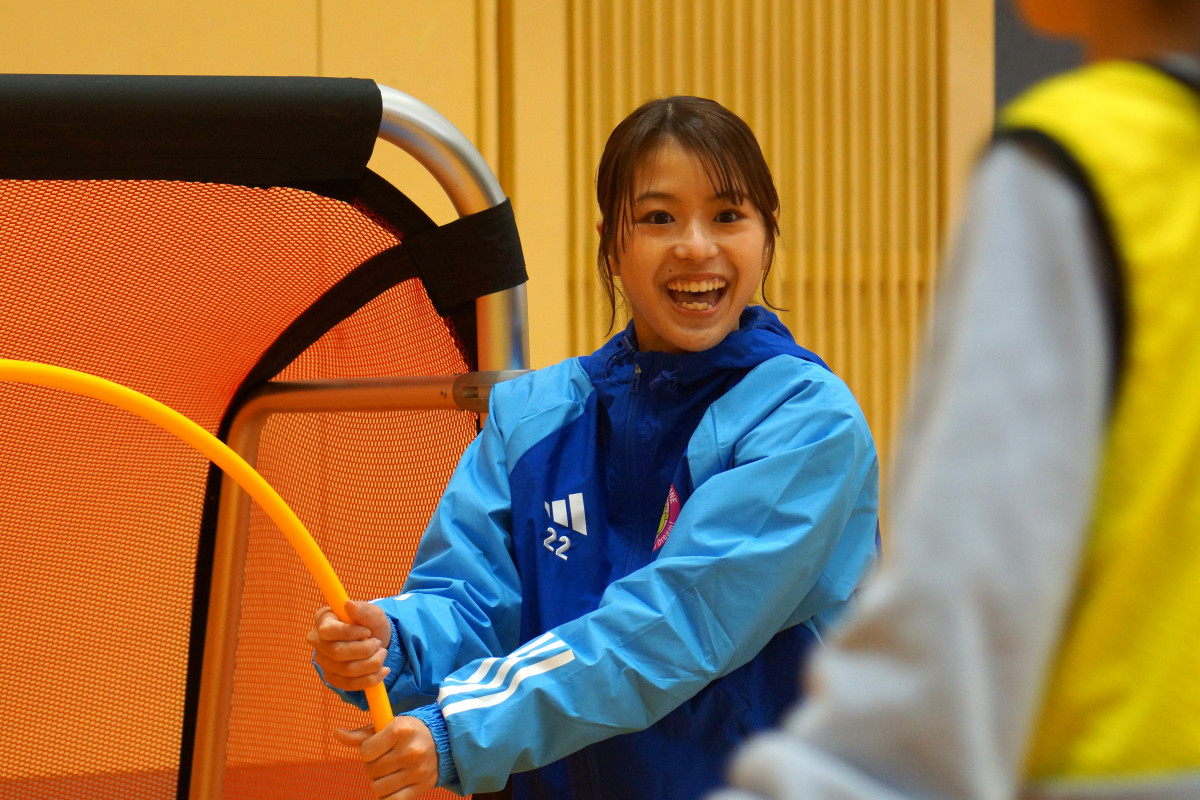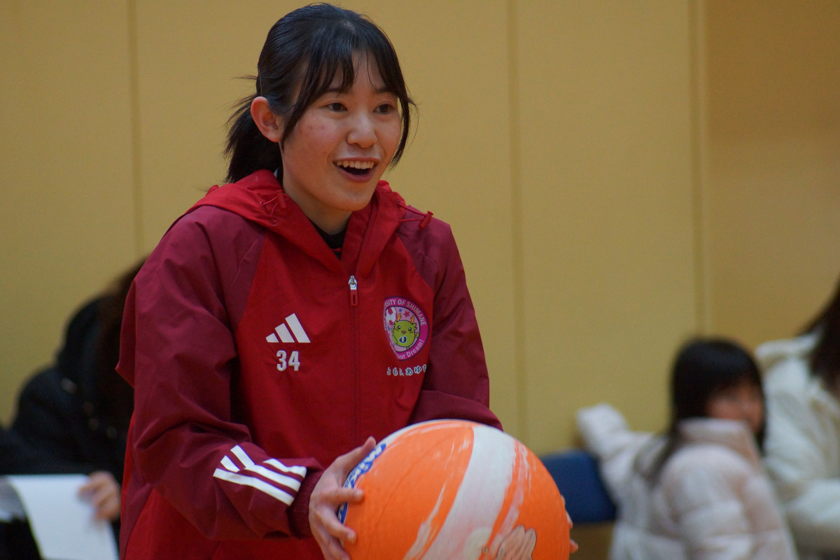 私は1年生の頃から"なでしこひろば"の活動に参加し、「笑顔とハイタッチ」を大切にしながら、多くの子どもたちとサッカーや運動遊びを通して関わってきました。2年生では部長を務め、仲間と支え合いながら活動を進める中で、周りを見て動くことや協力することの大切さを学びました。"なでしこひろば"で出会えた子どもたちや仲間、先生方とのご縁に感謝し、ここでの学びをこれからも大切にしていきたいです。ありがとうごさいました!