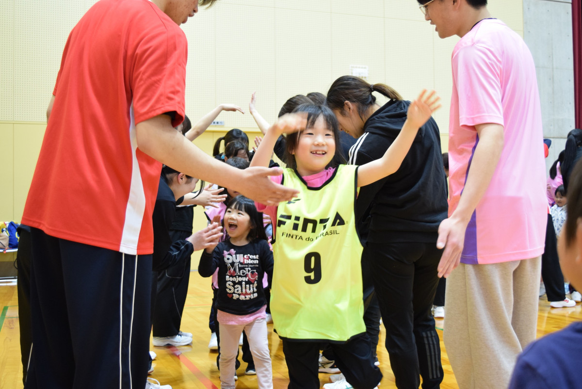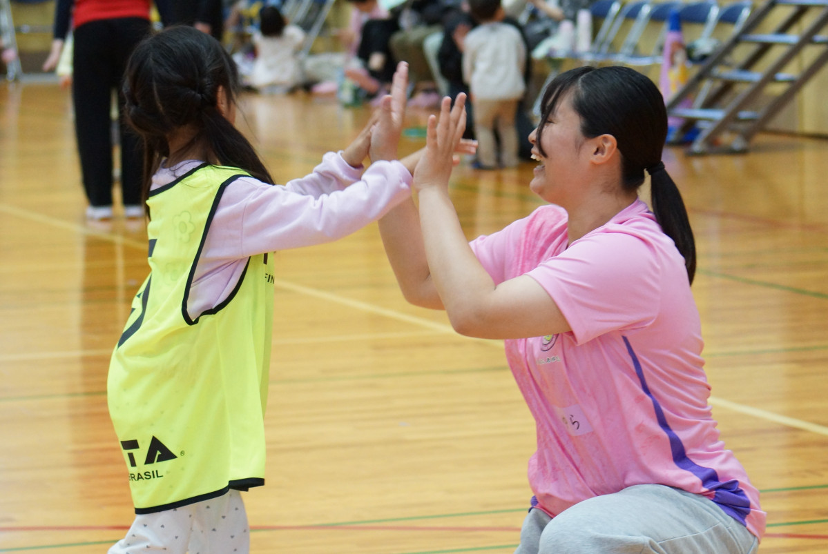 "笑顔とハイタッチ"をキャッチフレーズとして開催している”なでしこひろば”の活動を通して、運動好きな子どもと、運動指導の得意な学生を沢山増やし、地域に貢献したいと考えています。また、今年度の重点テーマとして”コミュニケーション:対話”をキーワードとして、ただ運動の指導をするだけでなく、”子どもの主体性を育む運動指導”をテーマに、子どもとの対話を大切にしながら実施しています。