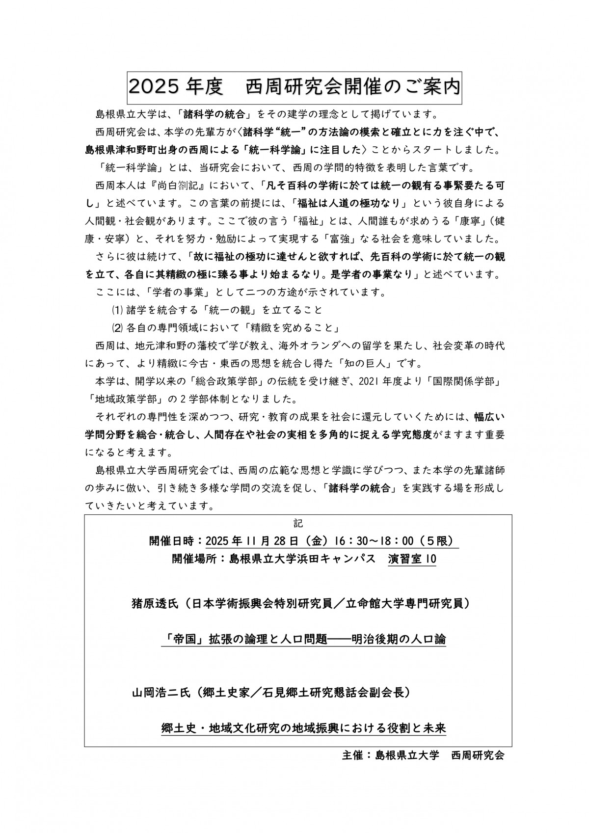 ■日時:11月28日(金)16:30~18:00■場所:島根県立大学浜田キャンパス 演習室10