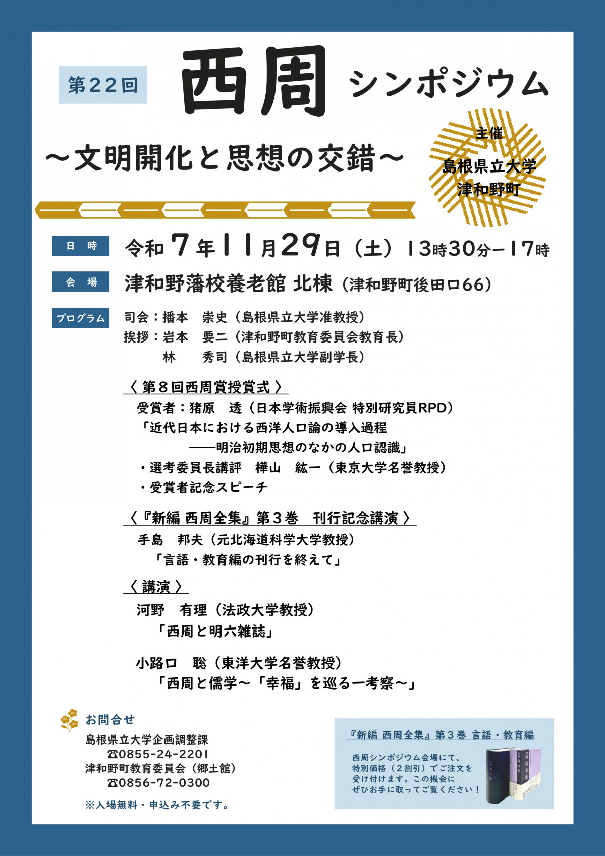 〈『新編 西周全集』第3巻 刊行記念講演 〉